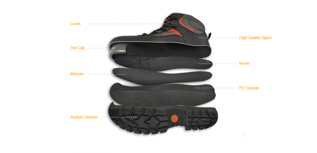 Toe and outersole give exceptional resistance agaisnt abrasion.